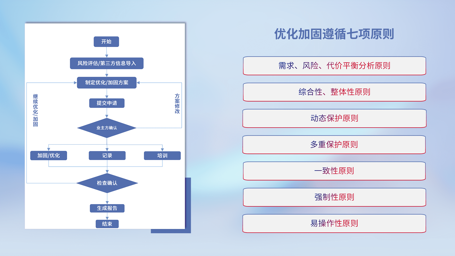 最大程度利用现有资产,,,对评估发现的问题进行封堵与整改,,,防止漏洞被利用,,提升整体网络安全性,,,,为客户带来高标准的优化加固服务。。